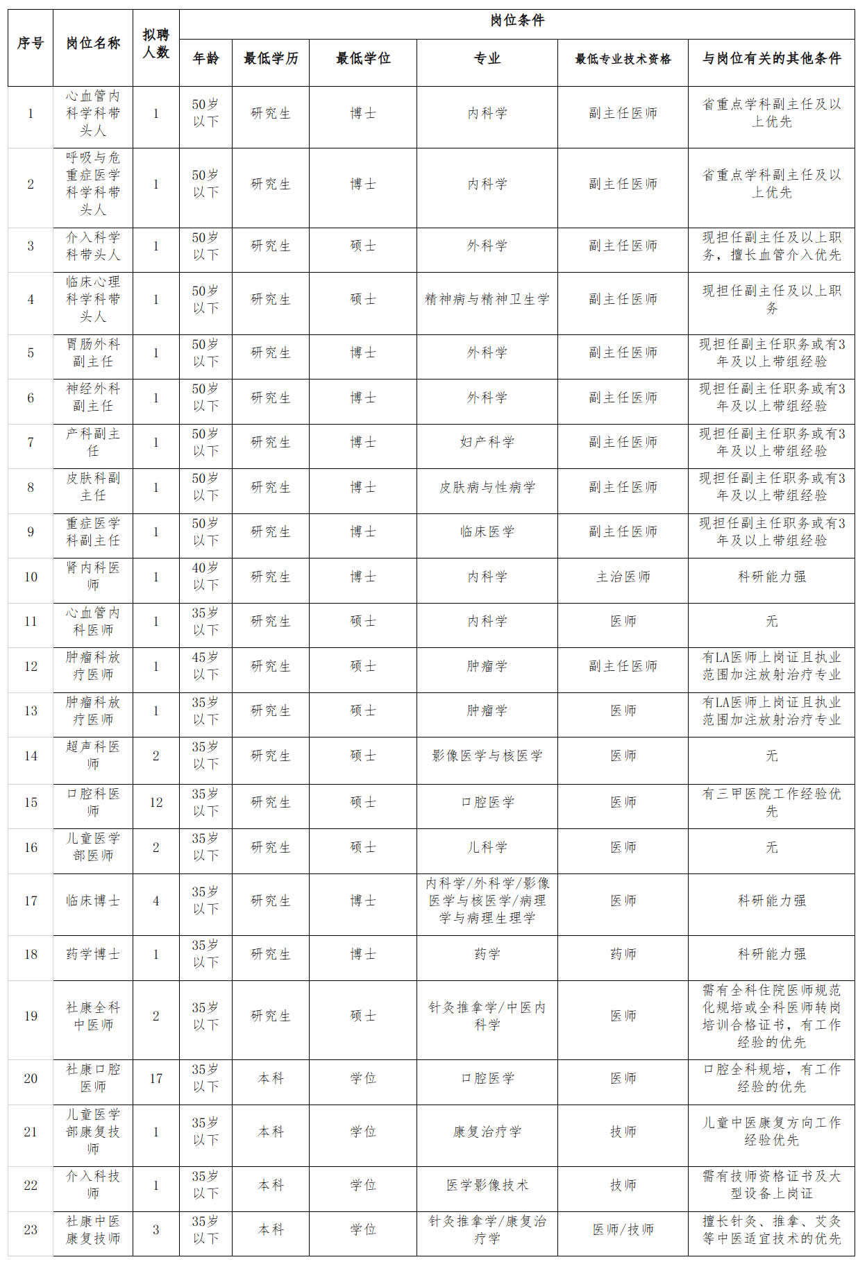 因业务发展需要,现面向社会公开招聘医务人员58名。具体招聘岗位如下表。本次招聘采用现场报名和网上报名相结合的方式,有意者请尽快与我们联系。